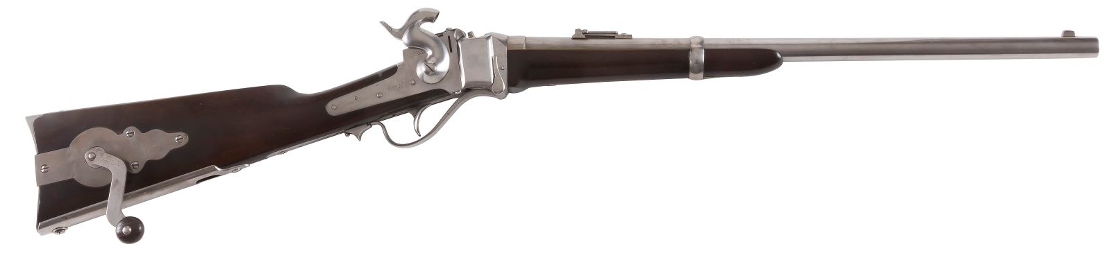 Rare carabine de selle Sharps New Model 1863 « Coffee Mill », un coup, calibre 52-70 (estimation 3.000 à 4.000 euros) | | ARMES À SYSTÈMES ET ARMES U.S. - Collection de la famille L. (2e partie)