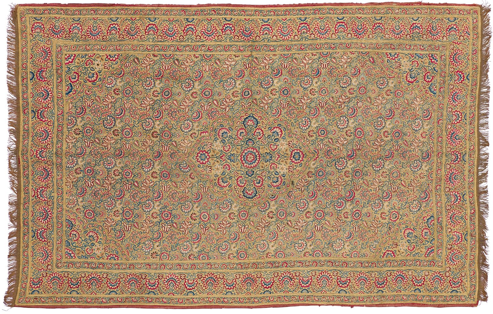Beau tapis d’été brodé à décor de médaillon floral, Inde, Probablement Deccan, XVIIIe siècle