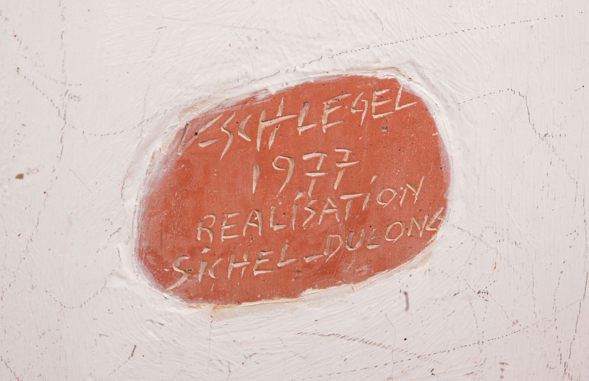 Conçue en 1977, cette "Sculpture à vivre" témoigne du savoir-faire singulier de l’artiste, qui a su faire dialoguer le geste artisanal et la pensée architecturale. Dans ses cheminées en plâtre, aux volumes souples et blancs, Schlegel unit la chaleur de la matière à la pureté des lignes, transformant chaque intérieur en œuvre habitée.