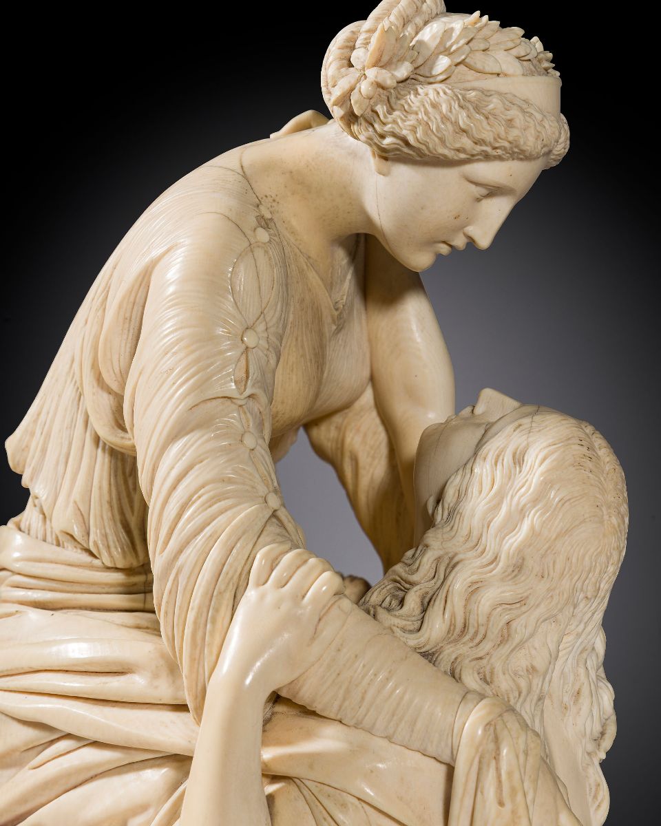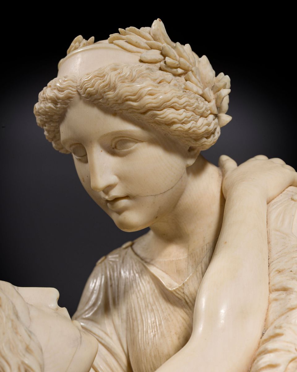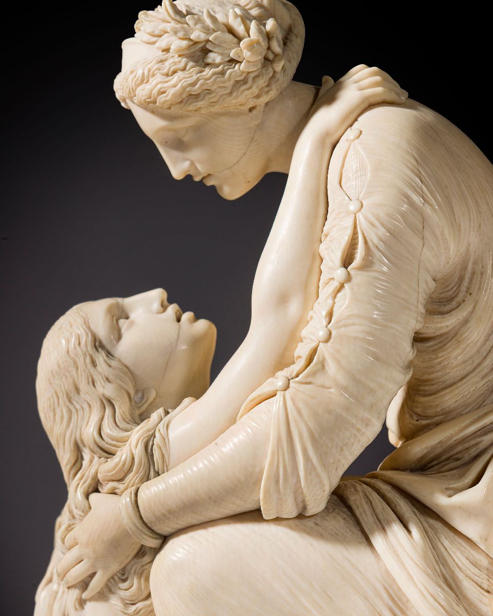 Avec La Miséricorde divine accueillant le Repentir, Henry de Triqueti signe une œuvre à part dans son parcours, qu’il conserva longtemps dans son atelier. Ce groupe en ivoire, d’une intensité rare, révèle la dimension la plus intime de sa réflexion spirituelle et artistique.