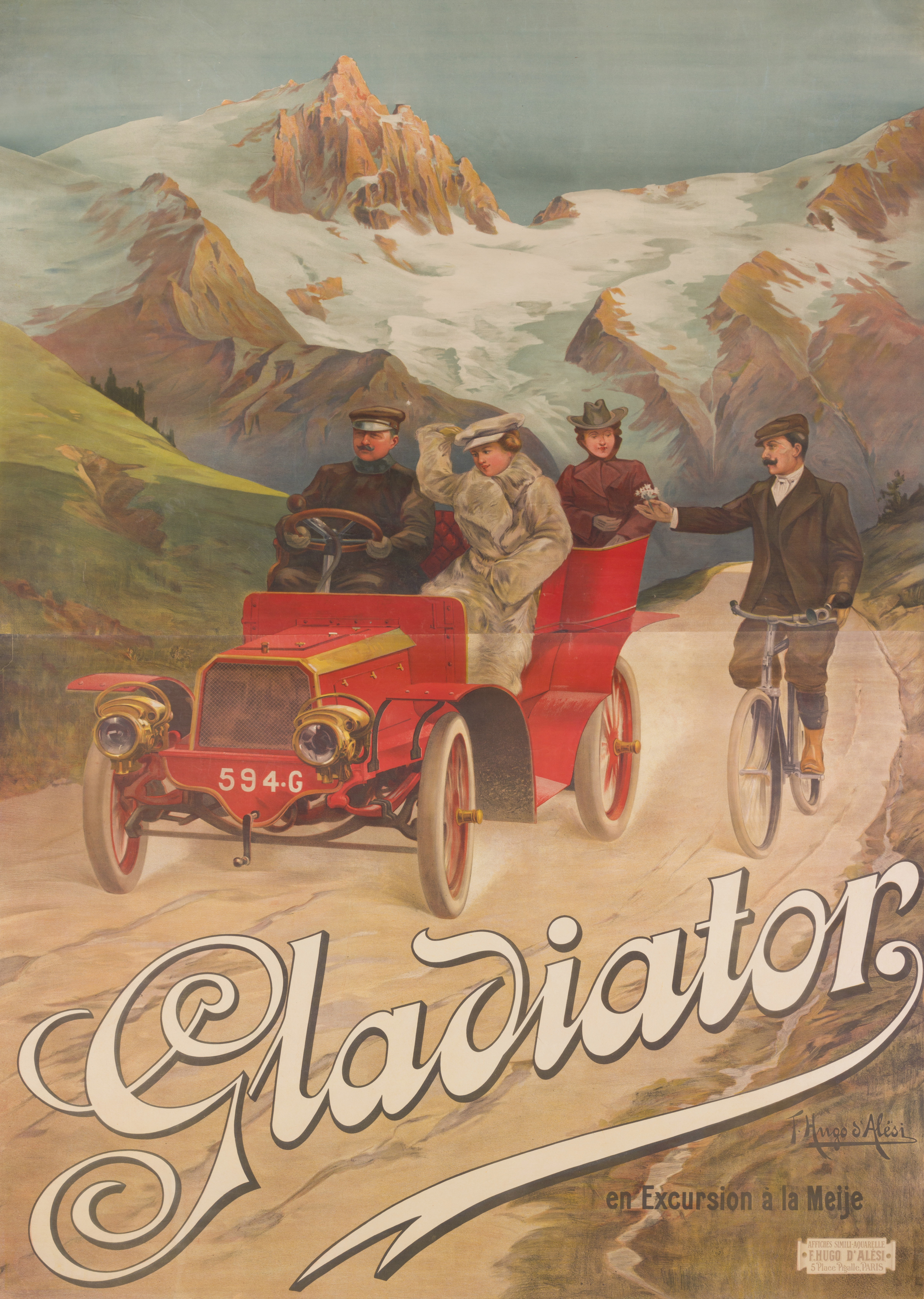 Ensuite, naturellement, une généreuse sélection d’œuvres des grands maîtres Jules Chéret, Georges de Feure, Alfons Mucha, Théophile-Alexandre Steinlen, Henri de Toulouse-Lautrec en tête, ainsi que le meilleur de la production d’affiches moins prolixes, voire occasionnelles comme celle de Jacques Villon. Bicyclettes, automobiles, aviation -par ailleurs gros commanditaires de publicité- la collection fait la part belle aux moyens de transport, en plein essor au début du XXème siècle.